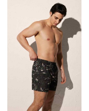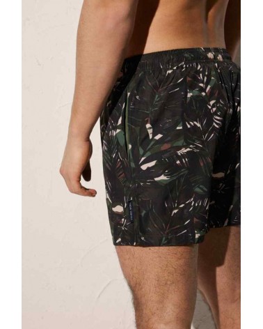 Bañador de largo medio para hombre. Estampado de hojas tropical.