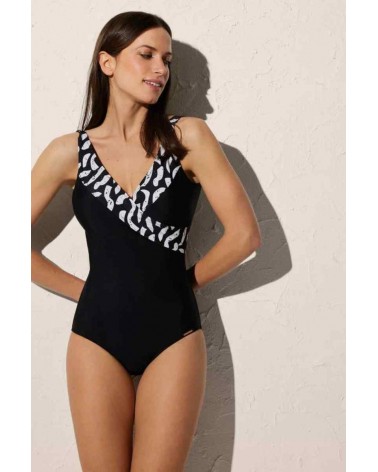 Swimwear Collection. Bañador reductor efecto vientre plano que moldea el cuerpo y estiliza la figura. Liso con estampado en la parte superior. Parte superior con relleno.