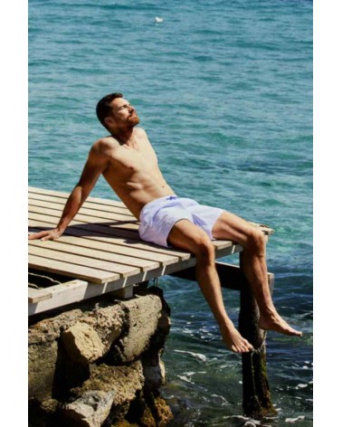 Bañador de la firma YSABEL MORA de hombre. Estampado a rayas en líneas verticales bicolor. Tejido muy cómodo, adaptable y de secado rápido.