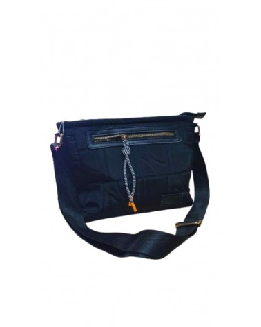 Bolso bandolera de mujer. Múltiples departamentos, tanto en su interior como en su exterior delantero, acompañado de llavero de cabo a modo de detalle. Tejido suave y amoldable.