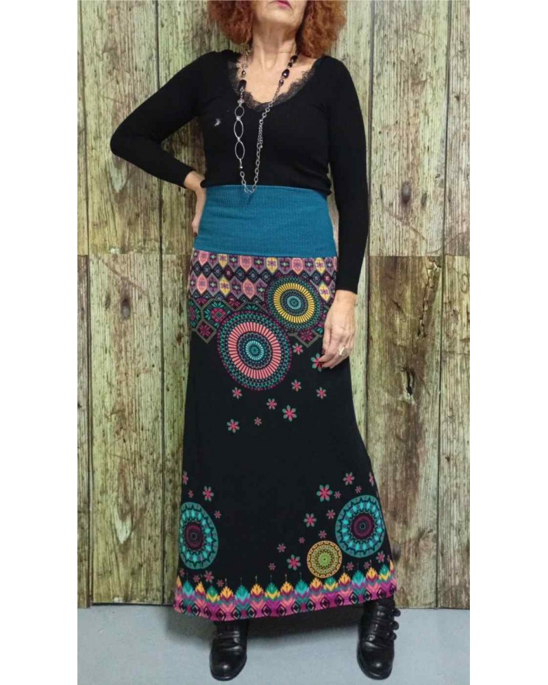 Falda de estilo casual de la firma BABA DESING. Estampado con diseño muy original. Tejido en punto de grosor medio. Corte recto.