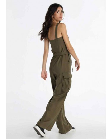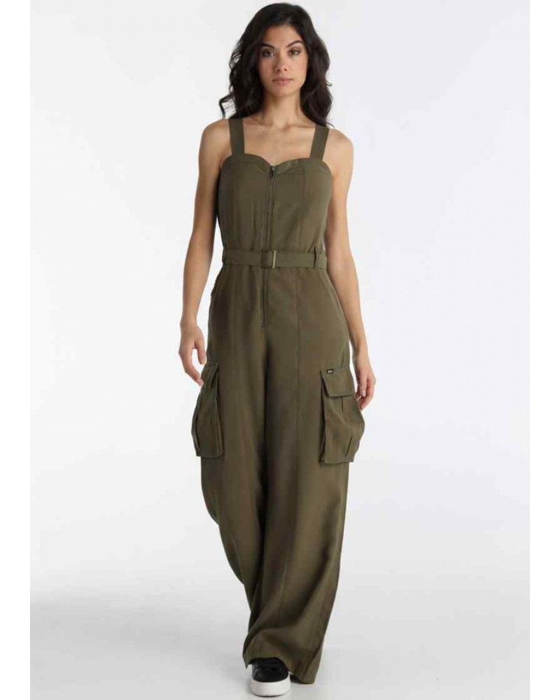 Mono de la firma LOIS de estilo casual. Tejido vaquero suave y ligero. Cremallera delantera. Opción de colocar tirantas. Pierna ancha con bolsillos laterales y otro par en la rodilla. Cinturón al mismo tono.
