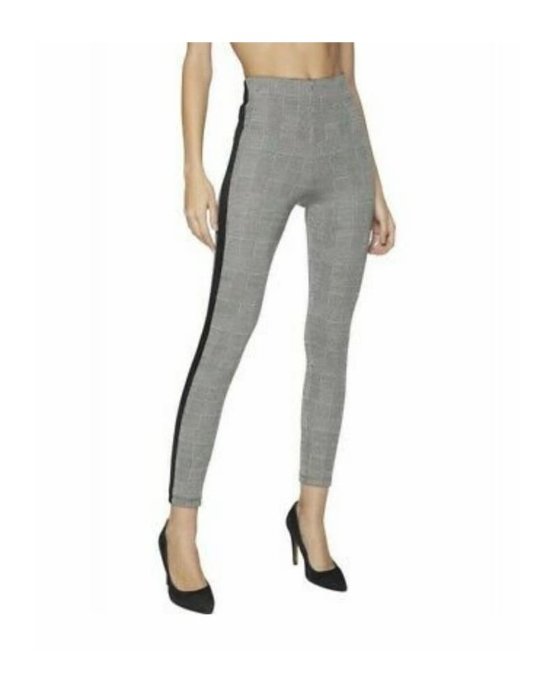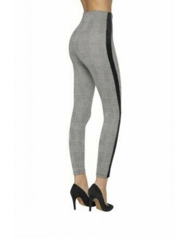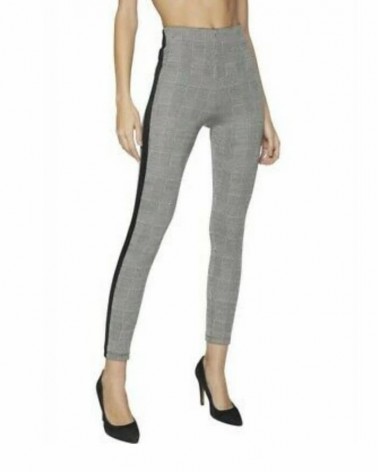 Legging efecto Push-up con estampado de pata de gallo, haciendo figuras en forma de cuadros, fantasía listas laterales en terciopelo negro. Una prenda cálida y muy cómoda que te dará mucho juego en tu armario.
