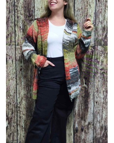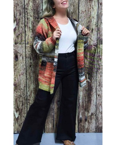 Chaqueta de mujer en punto de baguilla de la firma MCM Superior creativa. Original combinado de colores  degradados. Con bolsillos laterales, capucha dándole un aire muy joven. Tejido muy suave y confortable.