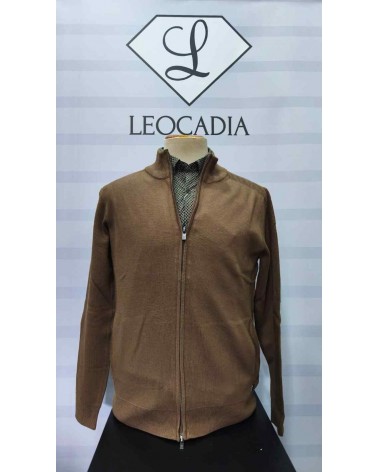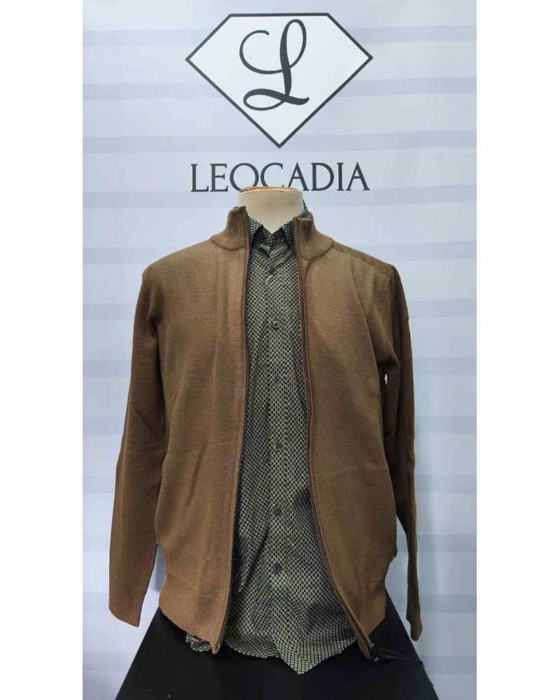 Chaqueta de hombre en punto de grosor fino. Puños de la manga y bajos en canalé. Cierre con cremallera. Bolsillos laterales. Cuello perkins.