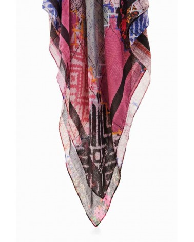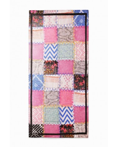 Foulard rectangular en tejido suave con estampado patch multicolor