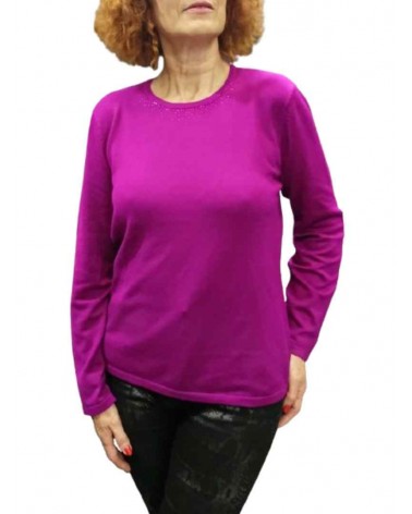 Suéter de la firma LAGAR'S en punto fino de la linea de vestir. Cuello redondo con fantasía de piedras en su contorno al mismo tono. Tejido adaptable y muy cómodo.