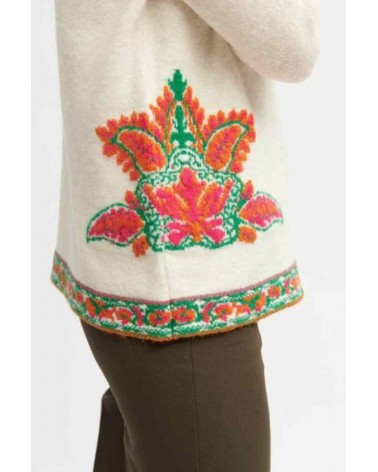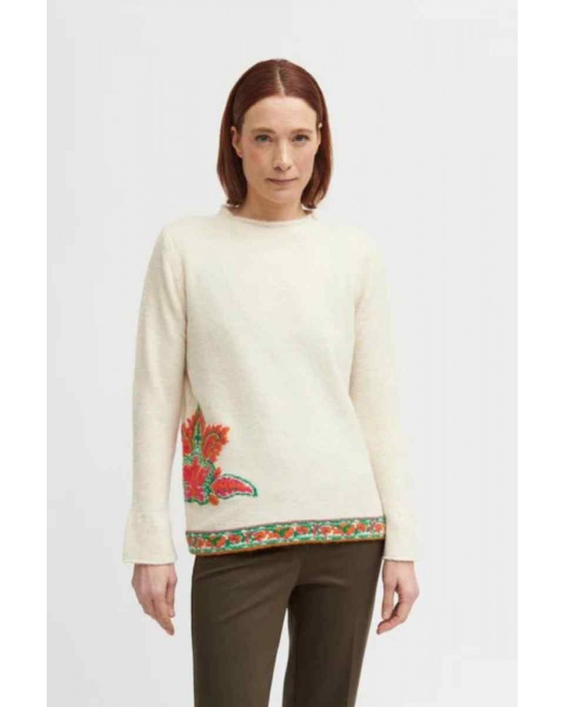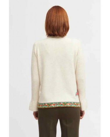 Jersey de mujer de la firma Bariloche en punto liso y detalle estampado en el lateral y en el bajo. Cuello redondo. Diseño recto. Manga larga. Diseñado y fabricado en España.