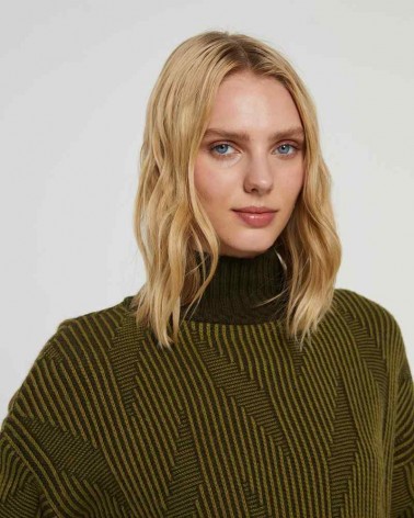 Suéter de mujer de la firma Paz Torras, diseño de fantasía bicolor.