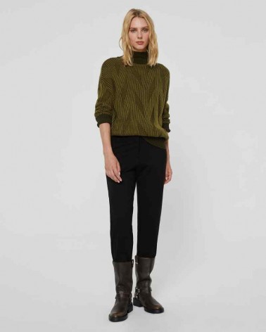 Suéter de mujer de la firma Paz Torras, diseño de fantasía bicolor. Manga larga y cuello perkin. Puños, parte baja y cuellos contrastados y acanalado. Fabricado en España.