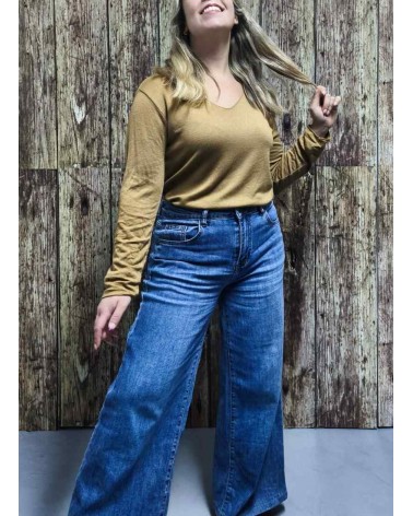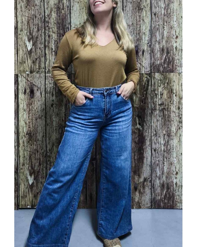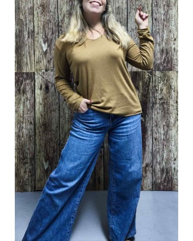 Suéter de mujer básico en tono liso. Escote en pico. Manga larga. Corte recto. Tejido con mucha caída, fluido y cómodo. Un fondo de armario que necesitas tener.