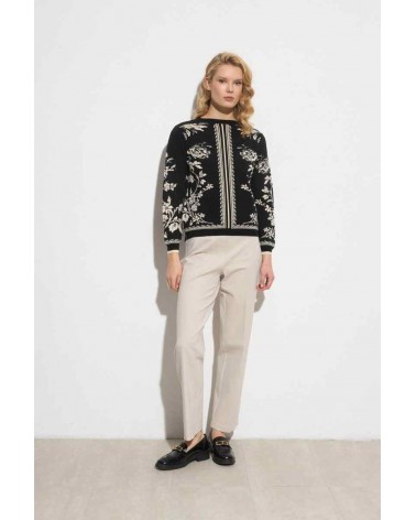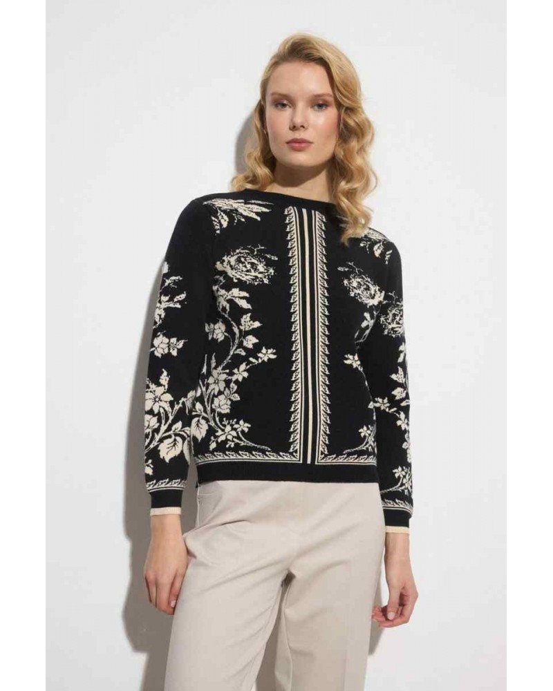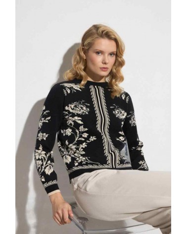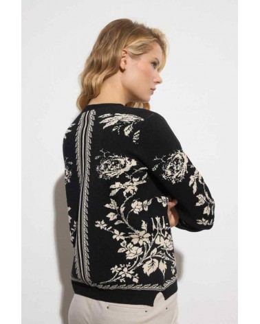 Jersey de la firma TINTA en punto liso y fantasía estampada a contraste. Cuello perkins. Diseño recto. Manga larga.