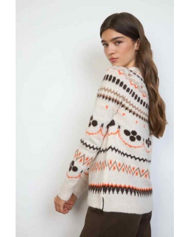 Jersey de mujer de la firma TINTA Y BARILOCHE. Punto de grosor medio. Fantasía estampada Cuello perkins. Diseño recto.Diseñado y fabricado en España.