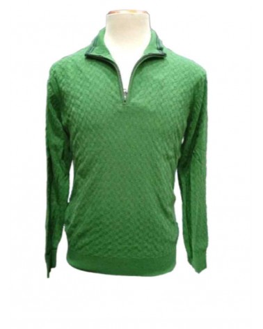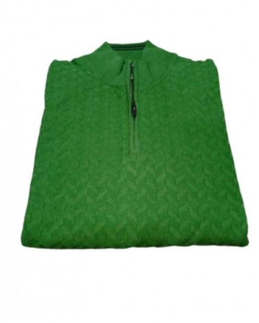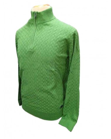 Jersey de hombre de la firma GENDIVE en punto de grosor fino. Cuello cisne con cremallera hasta media altura. Puños de la manga, bajos y cuello en canalé. Fantasía labrada por todo el jersey.