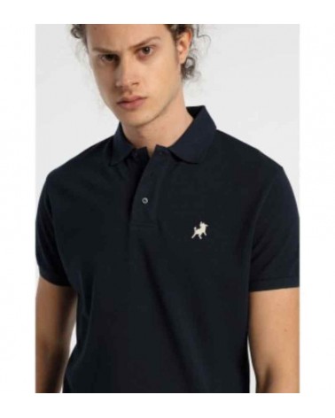 Polo piqué liso con pequeño bordado en contraste al color de la prenda, de logo corporativo con forma de toro, a la altura del pecho izquierdo.