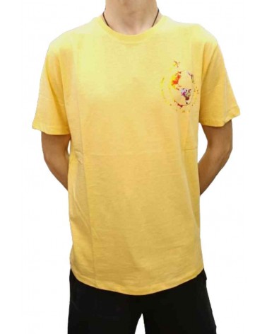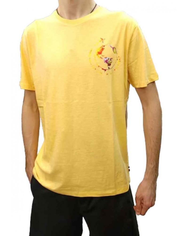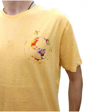 Camiseta de manga corta de la firma 2 GALGOS, en tono liso, con detalle estampado en forma de bola del mundo en un lateral. Fabricado en España.