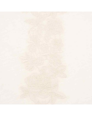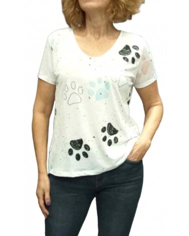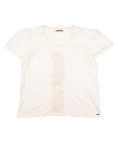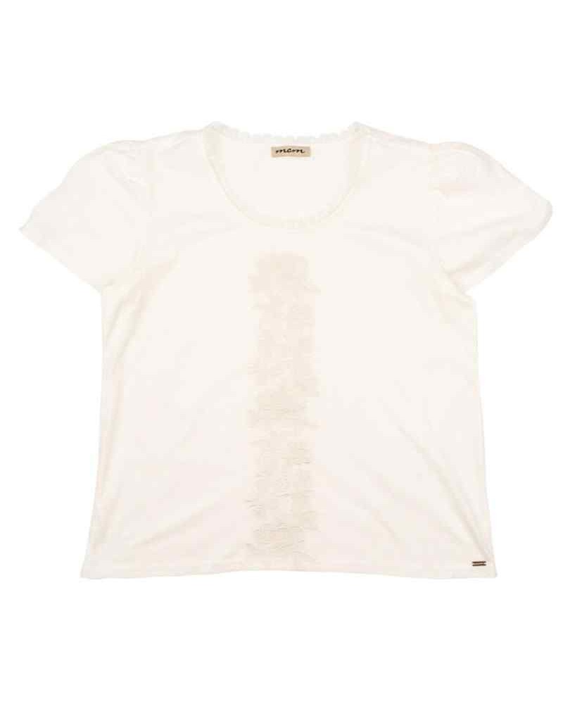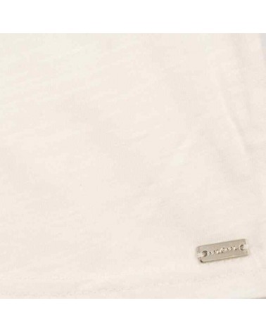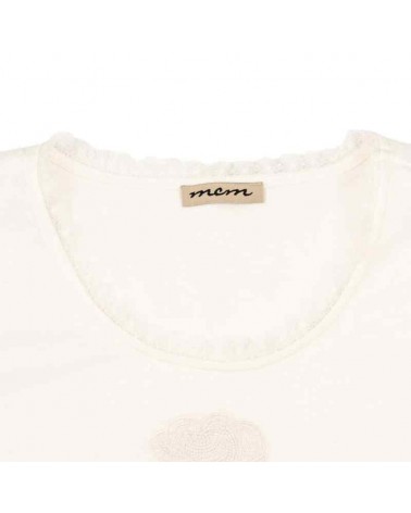 Top de mujer de la firma MCM en manga corta. Escote redondo con tira bordada en todo su contorno. Fantasía de franja bordada en la parte delantera.