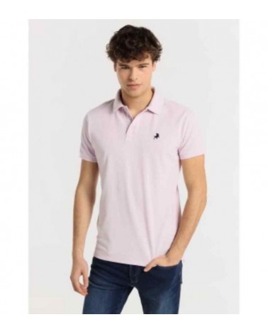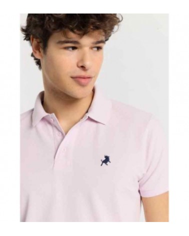 Polo hombre piqué liso con pequeño bordado en contraste al color de la prenda.