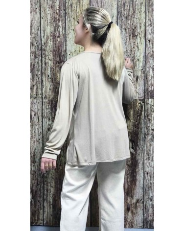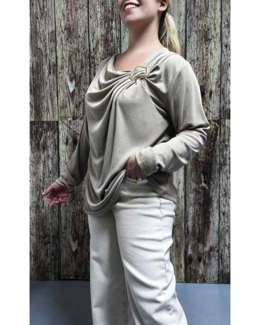 Top de canalé en manga larga. Escote redondo con detalle de broche dorado en un lateral. Ideal para darle un toque más especial a tus looks.