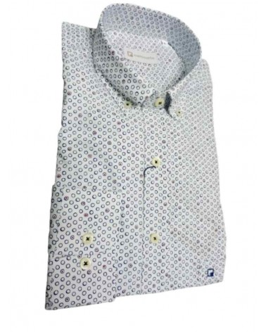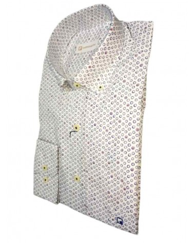 Camisa hombre de manga larga de la firma Camisarte. Cuello con botón. Fondo blanco y detalles en estampado.