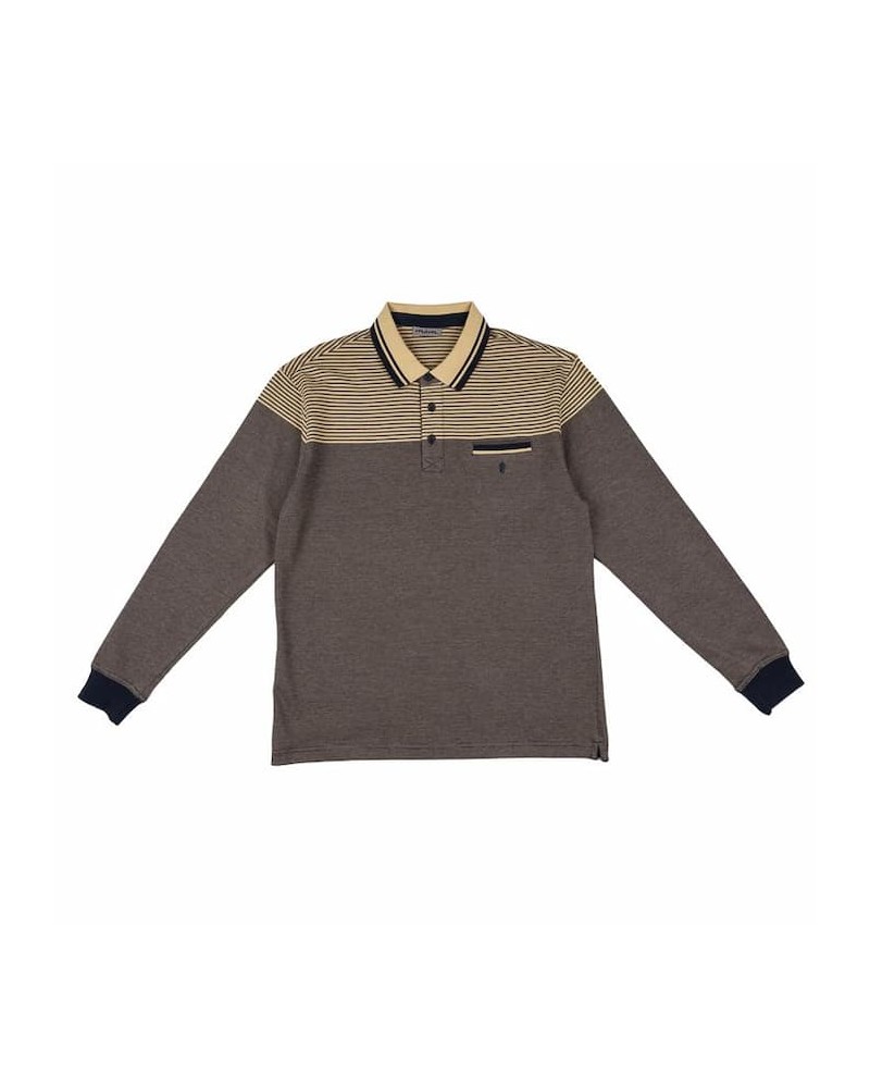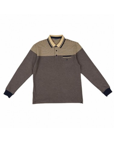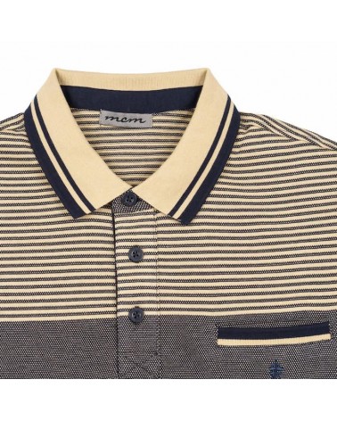 Polo MCM estampado combinando tonos azul muy oscuro y beige.