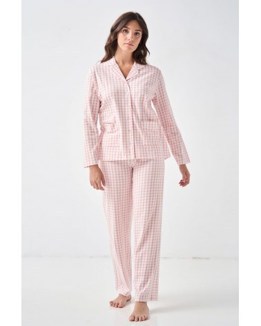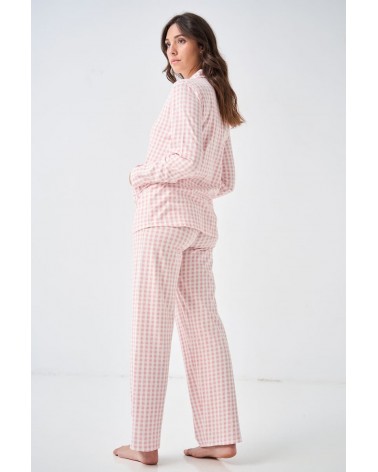 Este pijama camisero Vichy se compone de dos piezas de manga y pantalón largos confeccionadas en 100% algodón.