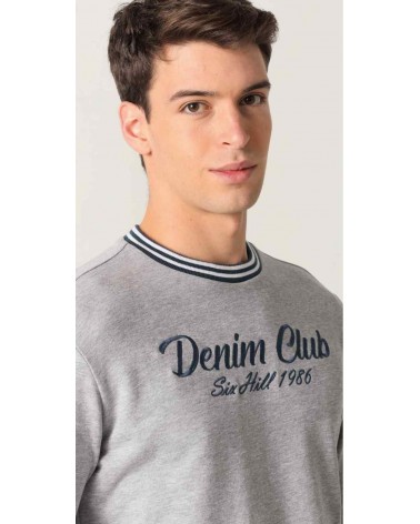 Sudadera SIX VALVES en tono liso con detalles a contraste. Estampación con las palabras " DENIM CLUB" bordadas en la parte delantera. Sudadera lisa con cuello, puños y bajo a contraste. Tejido de algodón. Fabricación nacional.
