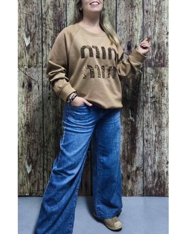 Sudadera de mujer en tono liso. Escote redondo. Mangas ranglan. Detalle en la parte delantera bordado y con lentejuelas. Un básico con mucho estilo para combinar con tus jeans.