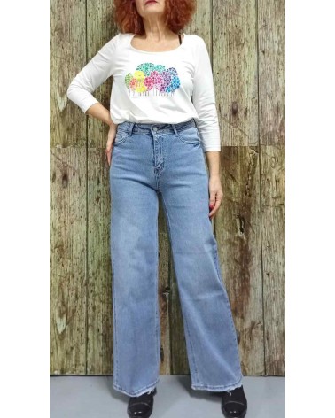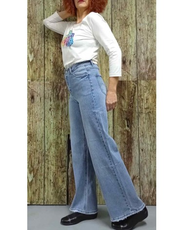 Pantalón vaquero de mujer de corte ancho y talle alto. Tejido suave, cómodo y adaptable al cuerpo. Ideal para tus día a día y tus looks más casual.
