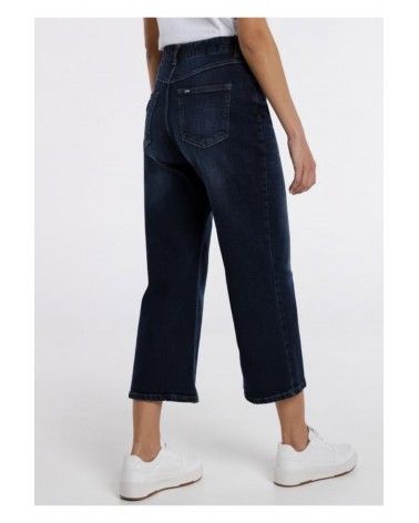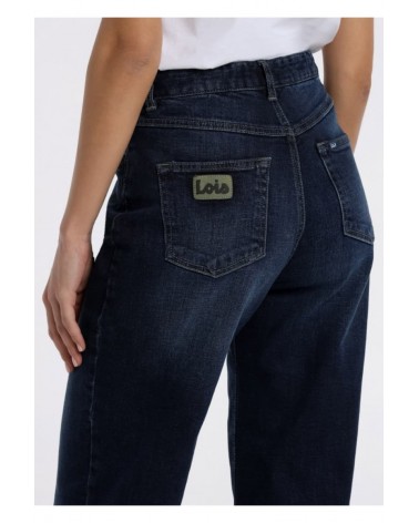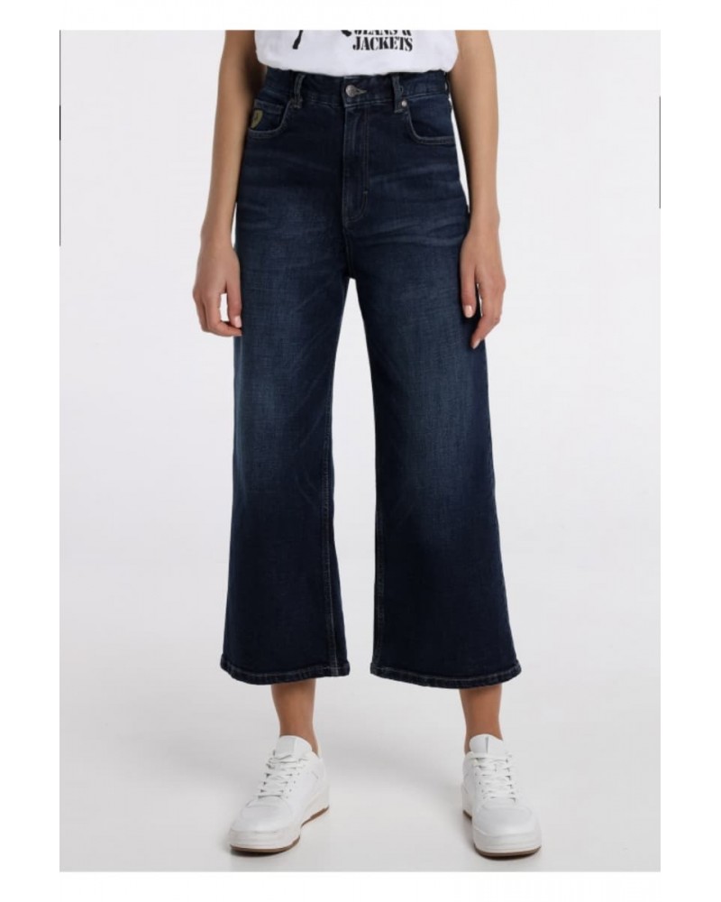 Vaqueros chica LOIS tipo culotte, talle alto, en azul oscuro desgastado.
