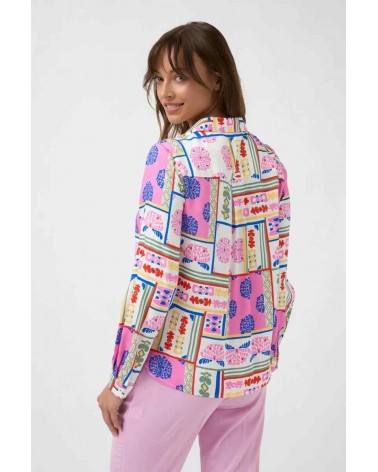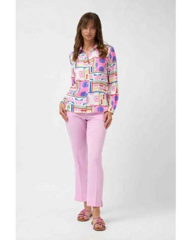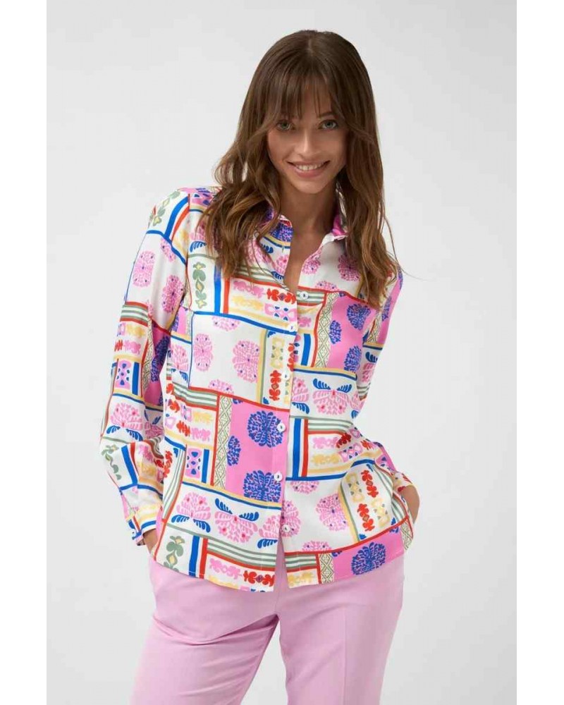 Blusa estampada de mujer de la firma TINTA. Cuello camisero. Cierre frontal con botones. Corte recto. Manga larga acabada en puño con botón. Diseñada y fabricada en España.
