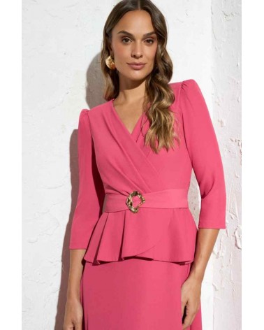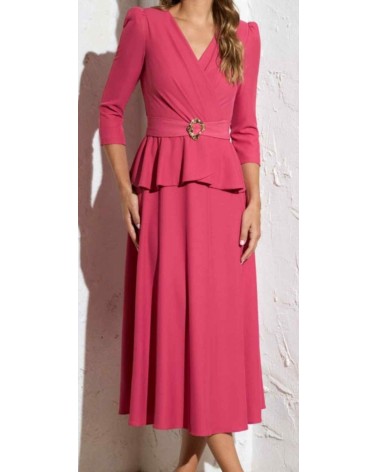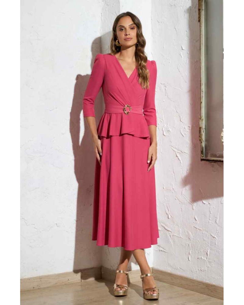 Vestido mujer de la línea eventos de la firma ROLE. Escote en V, manga francesa y largo midi. Su característico corte peplum en la cintura no solo aporta un aire sofisticado, sino que está diseñado para realzar la figura. Forro interior.