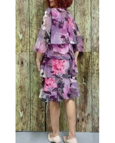 Vestido de la línea eventos de la firma LAMUSA. Escote a la caja. Manga francesa. Corte recto con volantes en diagonal tipo cascada. Tejido muy ligero y cómodo de llevar. Forro interior.